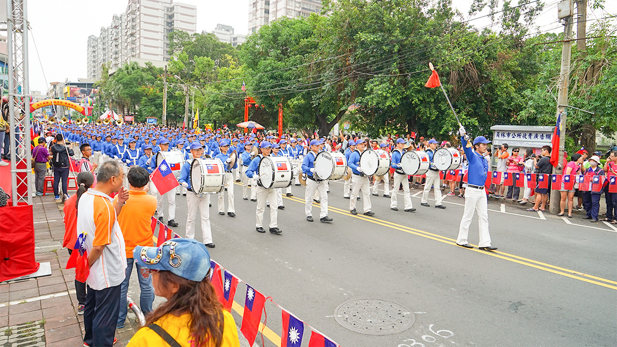 ![]() 图1:天国乐团应邀参加台湾彰化国庆游行 |