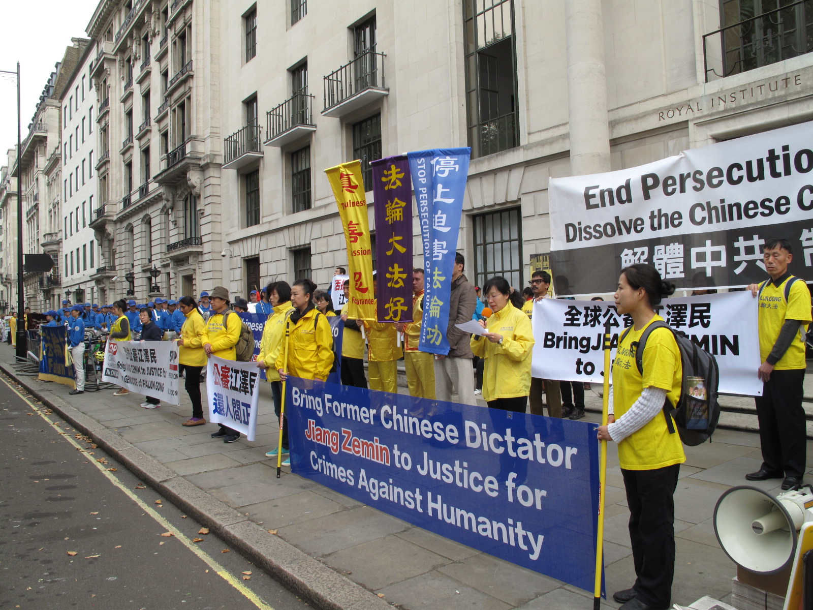 ![]() 图1-5:二零一五年十月十日,法轮功学员在在伦敦中使馆对面举行新闻发布会,传递真相、声援诉江、呼吁制止迫害 |