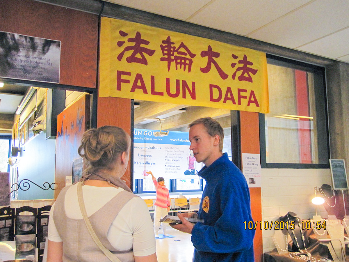 在活动期间,有感兴趣学炼功法的爱好者、有马上买芬兰语的《转法轮》或《法轮功》的书籍的人、更有人表示支持学员坚持诉江的正义之举;
