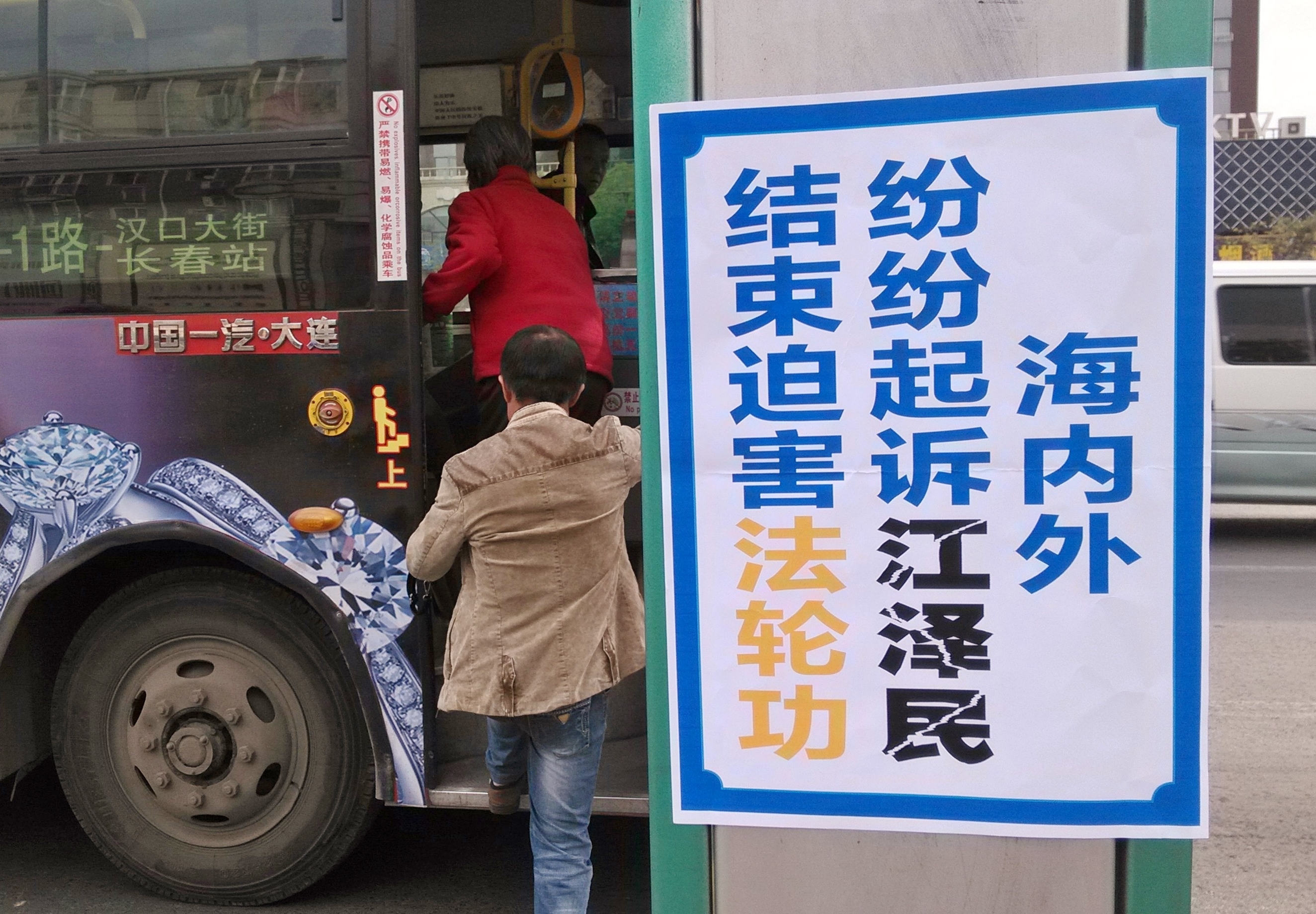 长春街头随处可见诉江等真相标语(图)