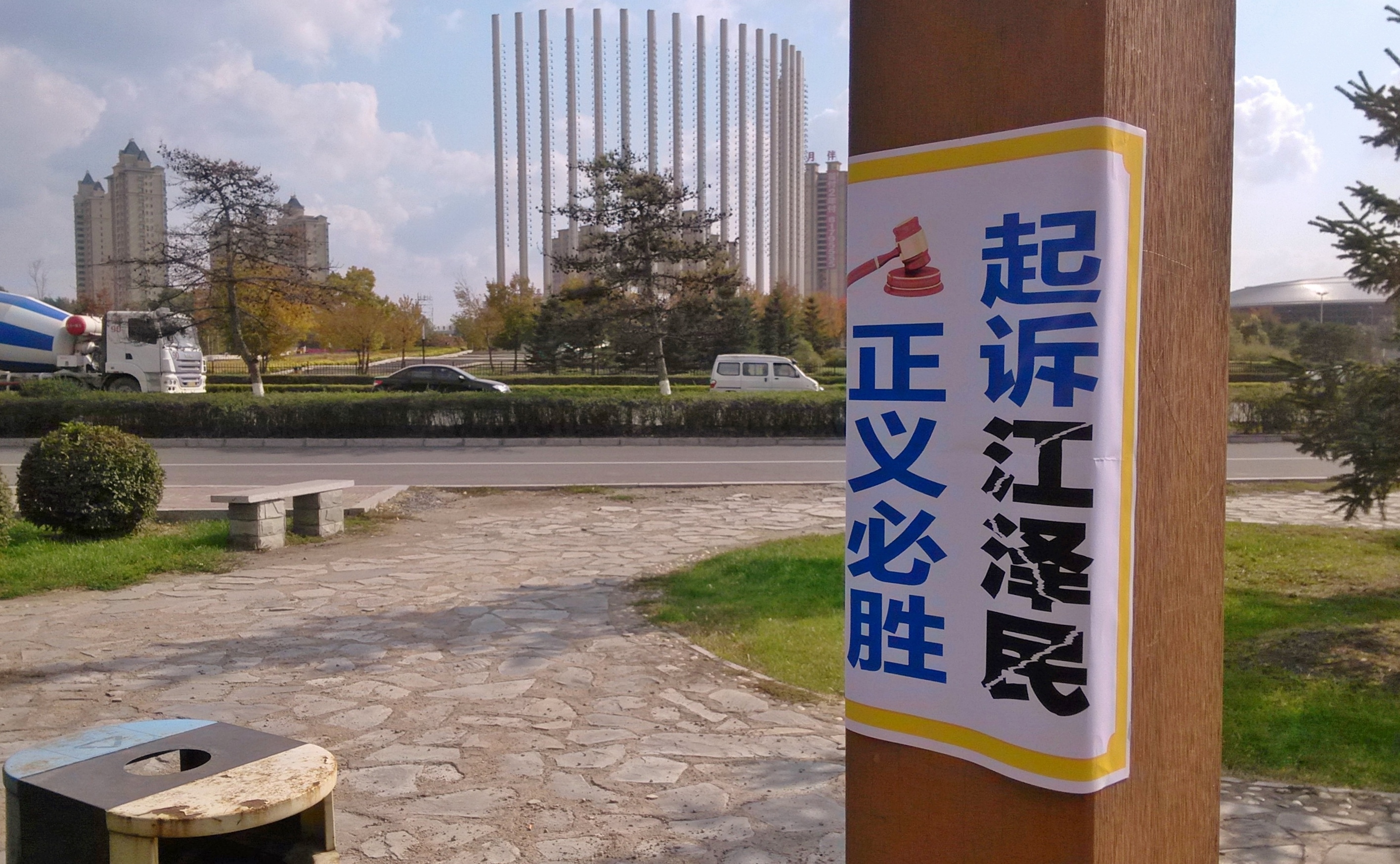 【明慧网二零一五年十月十二日】(明慧网通讯员长春报道)长春的世纪广场、南湖公园、长影世纪城等景点及公交站点、桂林路商业圈、大街小巷多处出现诉江标语,上书:“起诉江泽民 上天佑中华”,“全国起诉江泽民 尽显天意民心”,“起诉江泽民正义必胜”,“起诉罪魁祸首江泽民 应天时顺民意”,“全国起诉江泽民 停止迫害法轮功”,“法轮大法好”,“真、善、忍好”等真相标语。