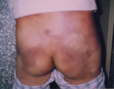 打饭时我当着狱警的面脱掉上衣,露出浑身青紫的外伤。值班所长符祥贺怕出人命而担责任,将我送到三河市中医院检查。因被打折了八根肋骨,伤势太重危及生命,中医院拒收。当天(三月二十日)夜里十点多,三河市公安局主管副局长王伟义、看守所所长耿德生,带人将我拉到北京通州二百六十三医院。住院期间,看守所指导员果宝生、副所长王文通、警察吴永海、石立增负责监控看守。住院十八天,等体外青紫、瘀伤基本褪色了,警察才同意我出院。公安局赔款三万元并无条件释放了我,称不够逮捕条件。整理材料时写因病被放,以掩盖将我故意打成重伤的事实。