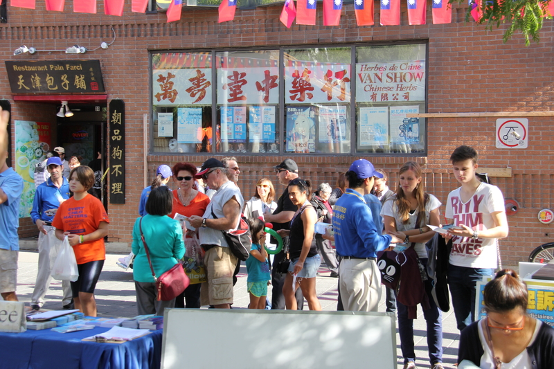 ![]() 图3-4:蒙特利尔法轮功学员在唐人街中山公园传播法轮功的真相,许多民众驻足了解真相,并签名支持“诉江”。 |