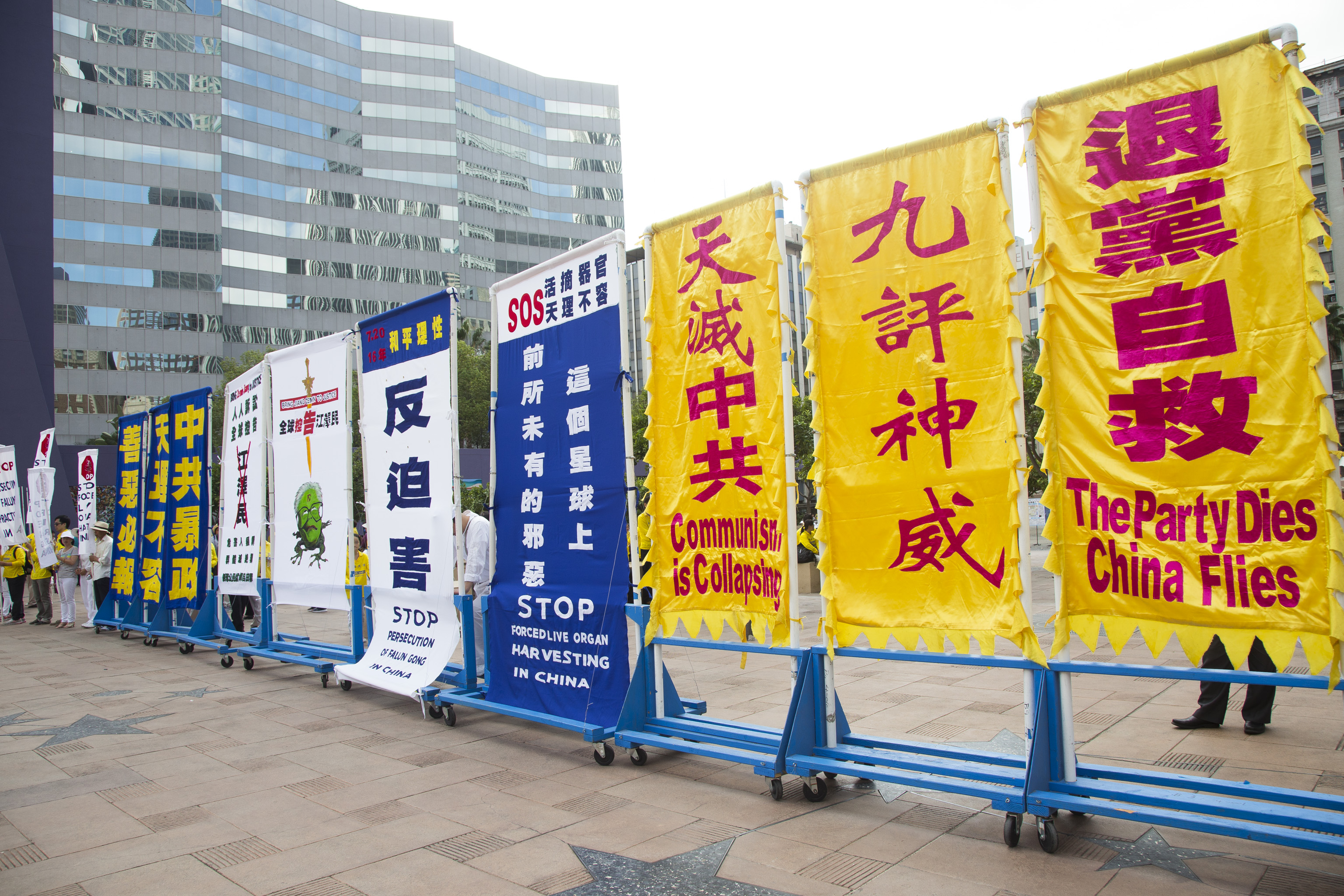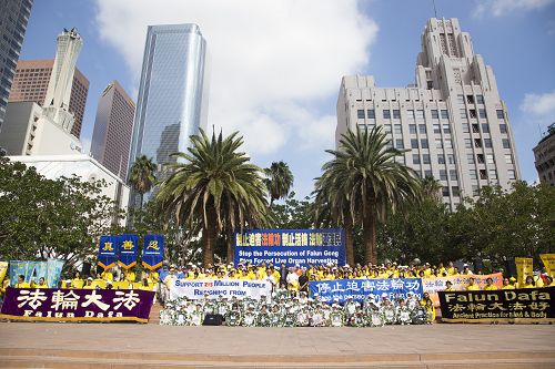 ![]() 图7-10:法轮功学员在洛杉矶市中心潘兴广场(Pershing Square)举行主题为“制止迫害法轮功、制止活摘器官、法办江泽民”的公众集会。 |