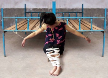 谭泽桢在广西女子劳教所期间因不承认罪犯的身份,点名不答“到”,和队长说话时不下蹲,于是那段时间每逢点名后便被捆绑在床架上,多次捆绑后造成呕吐不止才不绑了。