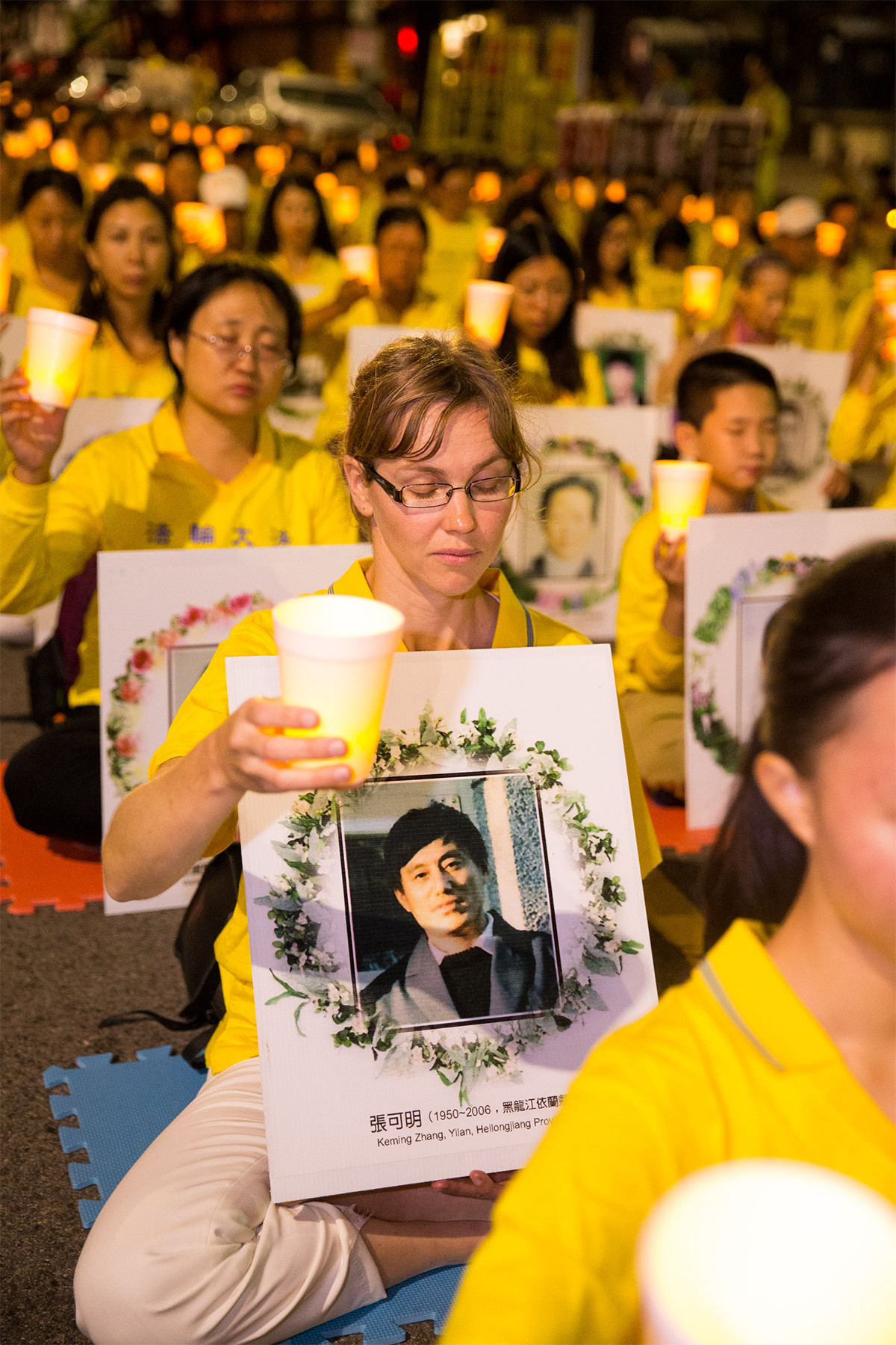 法轮功学员表示:“在这深沉的黑夜,我们来到这里,深深悼念被迫害致死的法轮功学员,强烈呼吁法办迫害法轮功的首恶江泽民!”