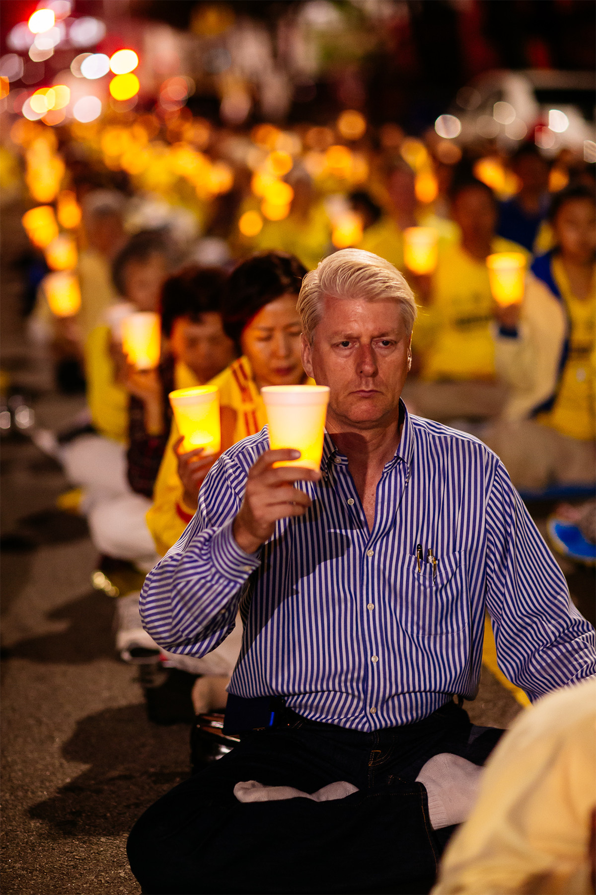 他说,自己相信今天来到烛光悼念集会现场的法轮功学员都有一个共同的目标,“我能感受到大家共同的心愿凝聚成一股强大的善的力量。这正是法轮功学员想要传递给世人的良善信息。我相信法轮功学员们手上的盏盏烛光,以及那悠扬的乐音与歌声,能够穿透并洗涤人们的心灵,同时给人带来正面的能量。当我来到现场,看到这样的画面,我同样也相当感动。”