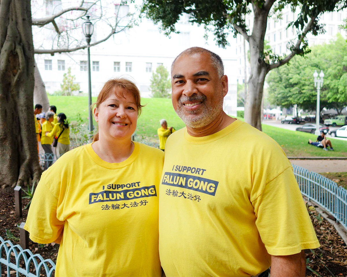 来自美国佛罗里达州奥兰多的Vensen和太太Bobbie,自二零一一年开始学炼法轮功。Vensen觉得学炼法轮功后,变得更健康、更有活力。学炼法轮功前,他们尚未结婚;学炼法轮功后,他们结婚、组织家庭,夫妻相处很融洽。此次来洛杉矶除了参加法轮大法修炼心得交流会之外,也希望能通过讲清真相的活动,能让更多人知道在中国发生的残酷迫害。
