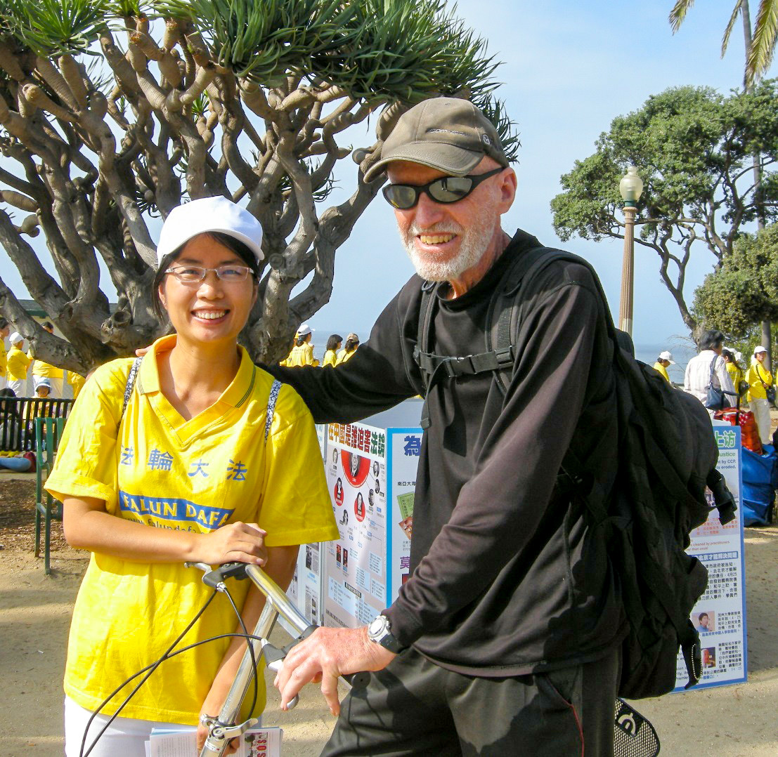 在洛杉矶生活了三十多年的日本人Kinei在等公共汽车前看到了炼功场面,他照下了相片,他说:“三、四年前我在日本就看过新闻有介绍法轮功受迫害的情况。中国是受中共统治,中共有些做法是非常残暴的。我们人应该是有自由、有信仰、有人权的,而所有的这些东西都是顺上帝和神佛的意愿的,所以任何人都不能剥夺别人的权利的。”