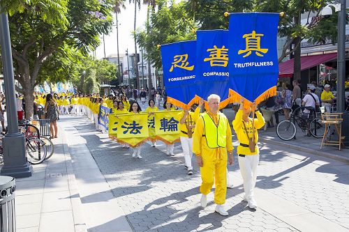 ![]() 图13-14:在洛杉矶圣塔莫尼卡海滩码头繁华的第三街举行游行,呼吁更多民众关注 |