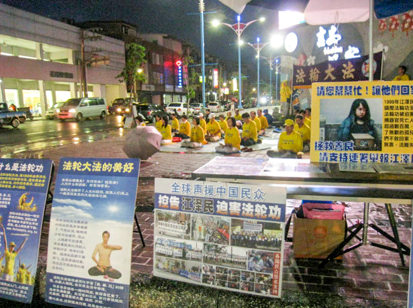 ![]() 图1:花莲法轮功学员在黄昏市场前集体炼功 |