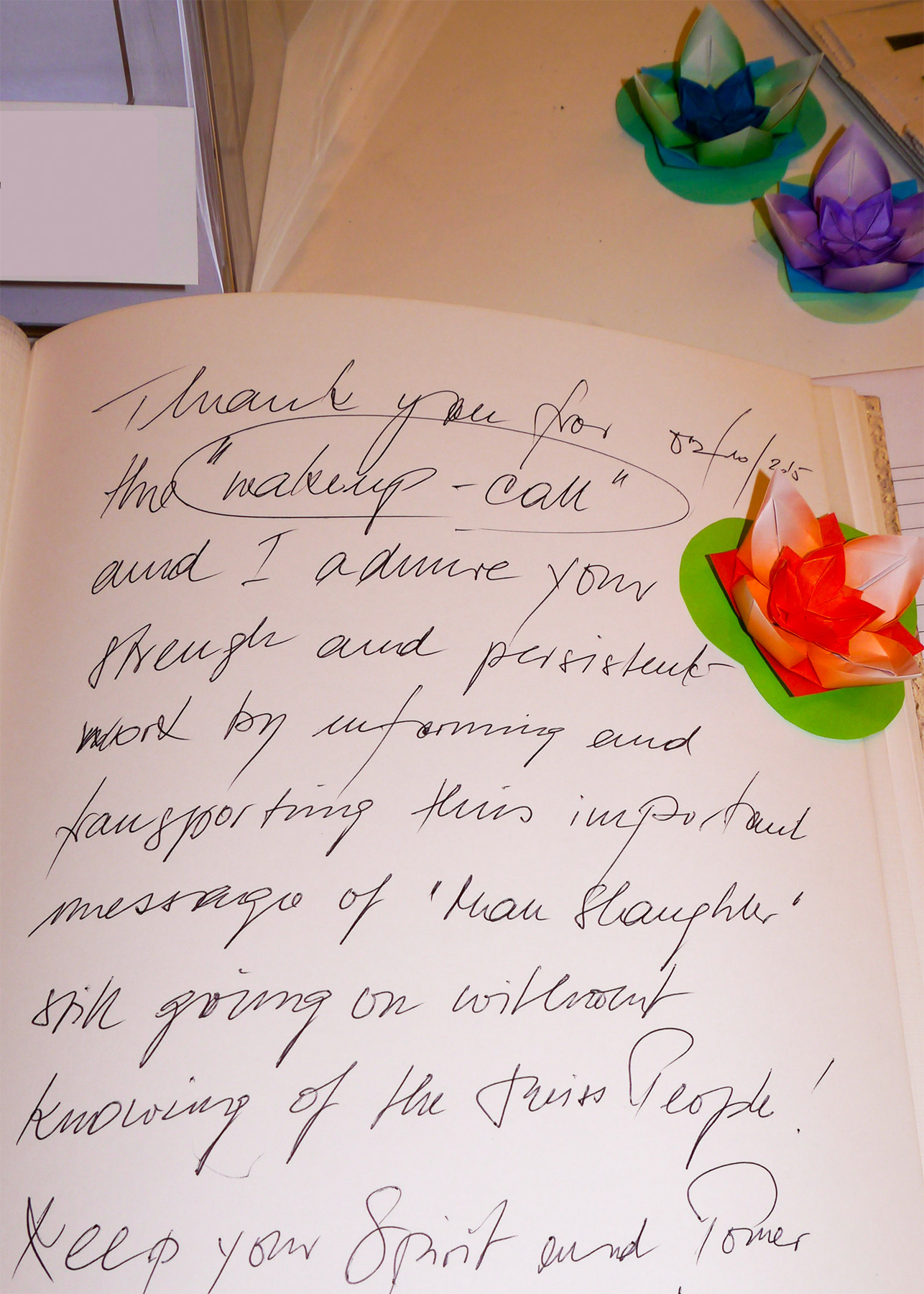 “谢谢唤醒我们!这场瑞士人毫不知情的大屠杀仍在发生,你们以坚韧的意志力,持续不懈的努力传递这一重要讯息,这让我钦佩。坚持你们的精神和力量!”