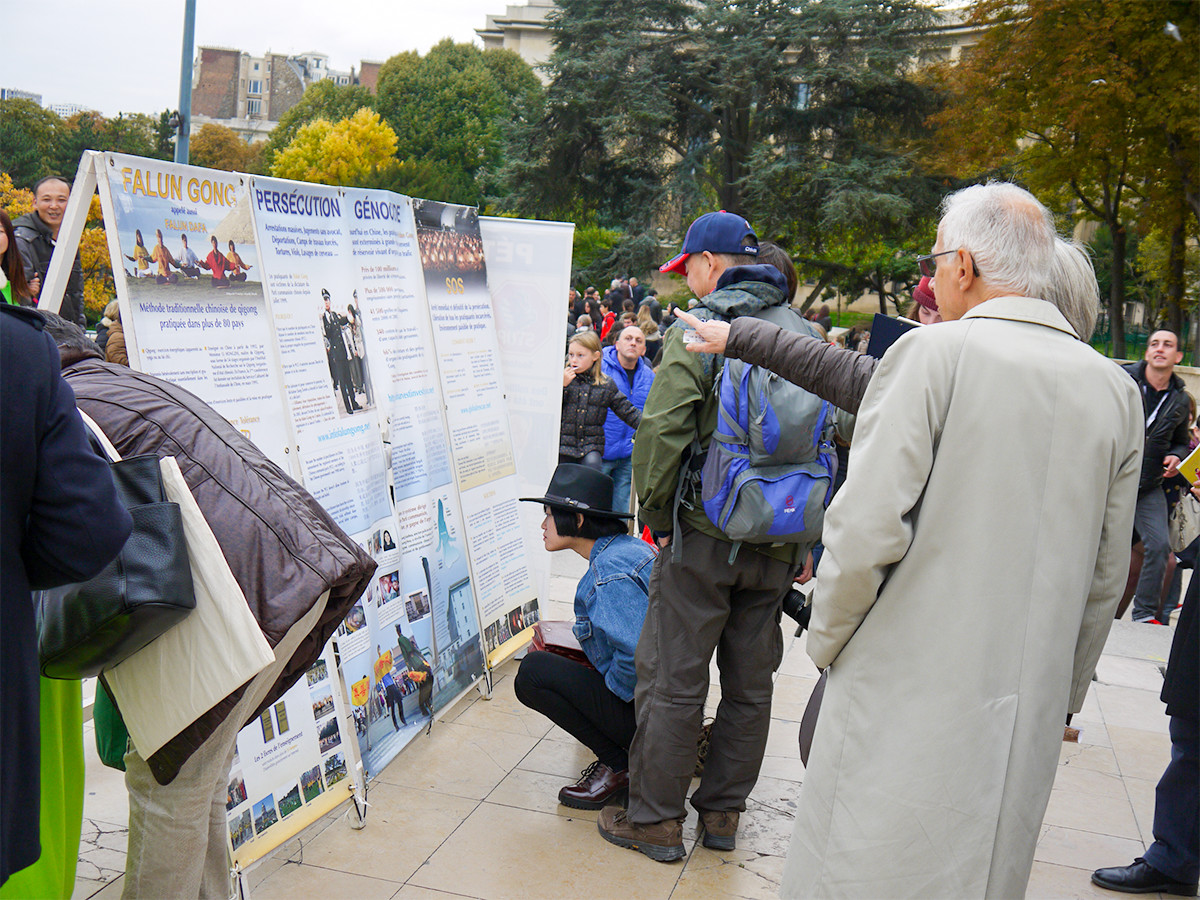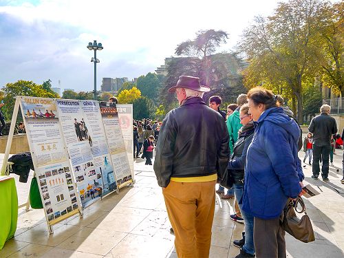 ![]() 图2-5:巴黎艾菲尔铁塔下,游客认真阅读法轮功真相展板 |