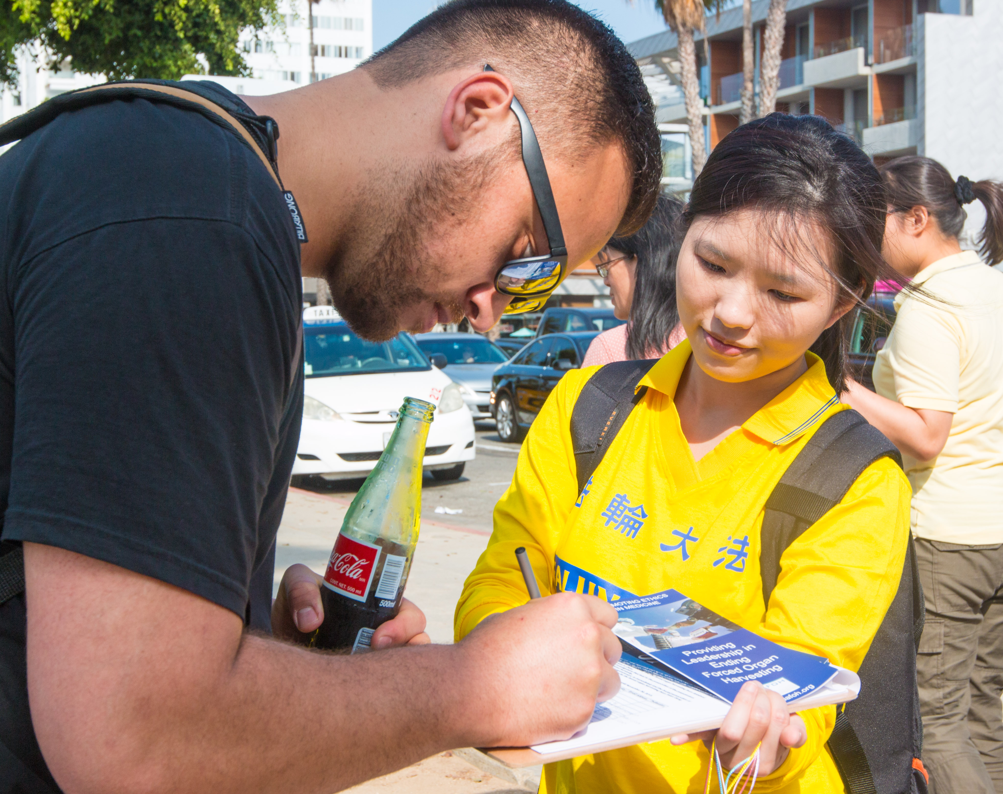 来自爱尔兰的Michelle Robertson和朋友一起到圣塔莫妮卡海滩游玩,她在签名后表示:“中国器官黑市的存在真的非常不公义、非常邪恶,这些人(法轮功学员)都是非常善良、有信仰的人,却因此而遭到虐杀,甚至被强摘器官盗卖,真是太令人震惊了!我们回去后一定会把这个真相告诉其他人。”