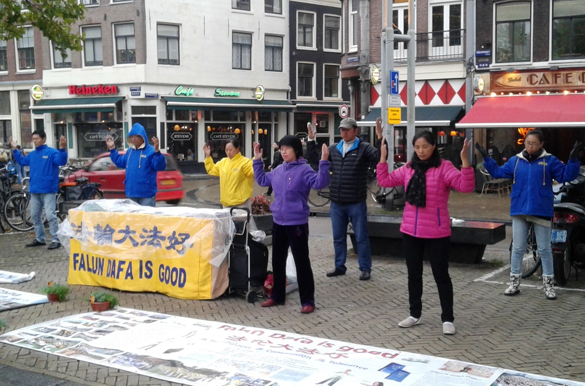 ![]() 图:法轮功学员在阿姆斯特丹唐人街举办讲真相活动,演示功法 |