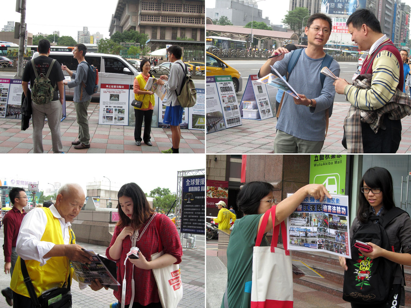 ![]() 图4:法轮功学员向民众说明法轮功真相。 |