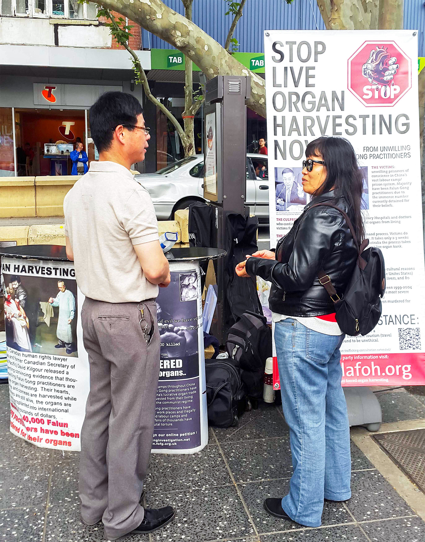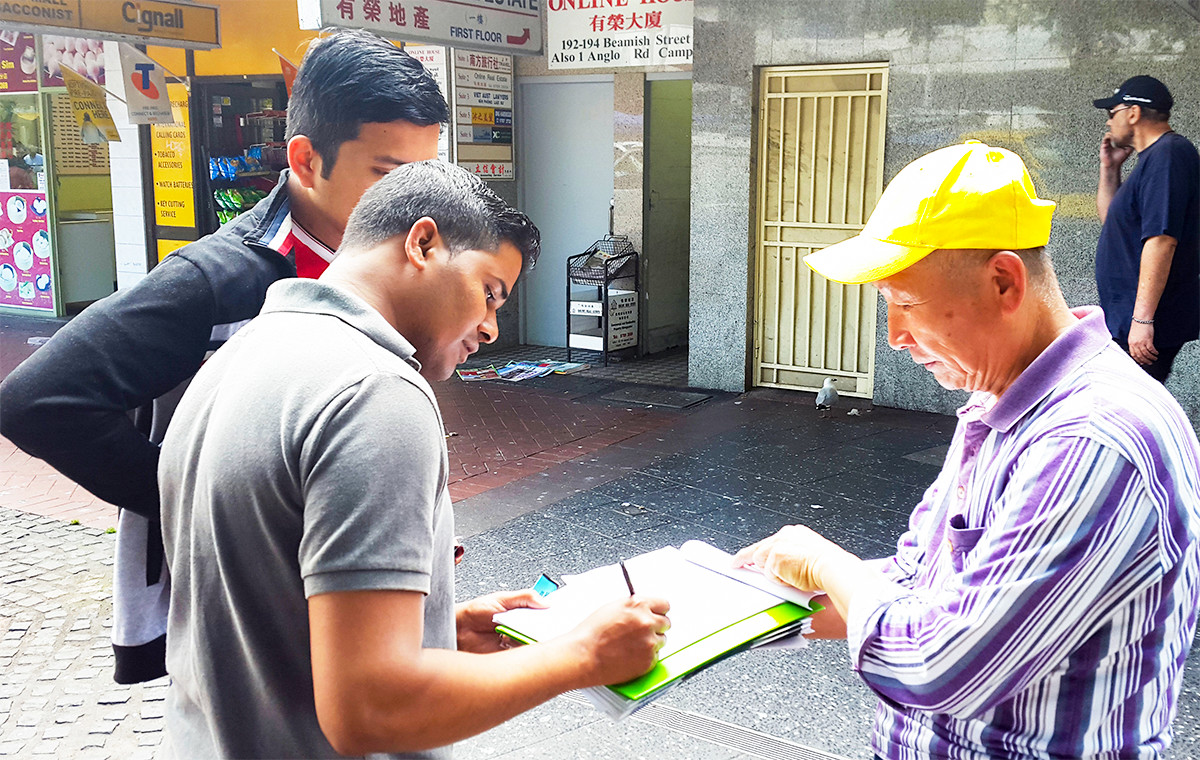 越南裔Zavi Khan女士在法轮功学员讲真相展版前看了很久,并向法轮功学员了解了很多真相。之后她表示:我已经看到你们讲真相好久了,为何迫害始终还持续发生着?我们澳洲政府做了什么?国际人权机构做了什么?为何我还看到这个迫害真相展?迫害已经十六年了,我的天哪!我相信好人最终应该得到好报。