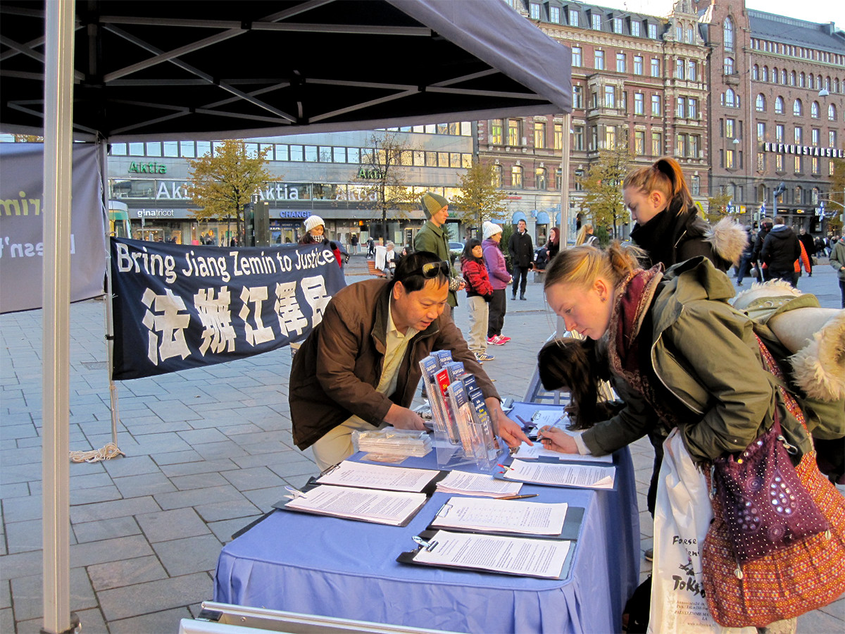 来自芬兰的宝莉(Pauli)女士沉重地说:无法想象活摘器官在中国发生十几年,应该控告他(江泽民)。