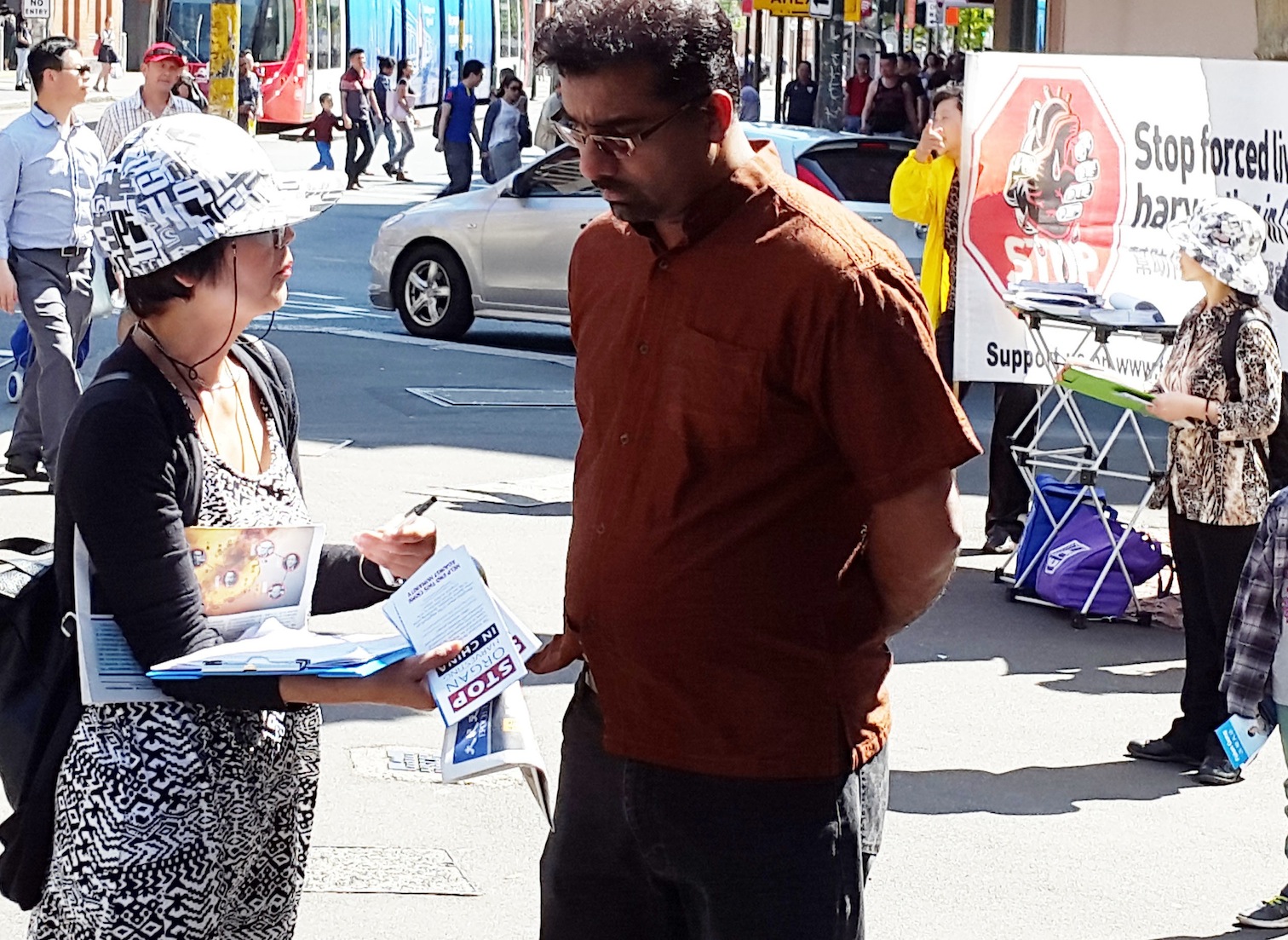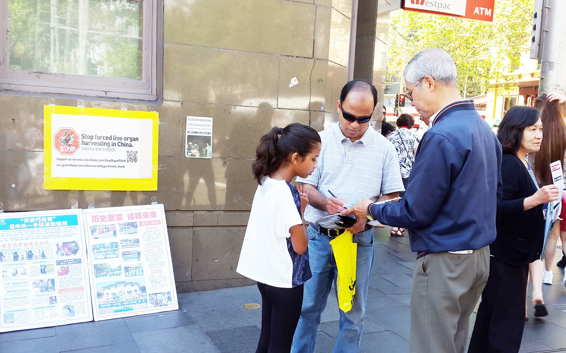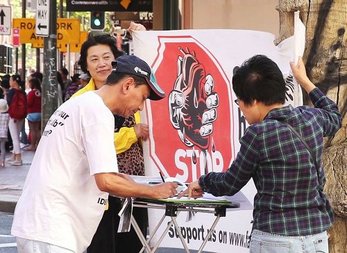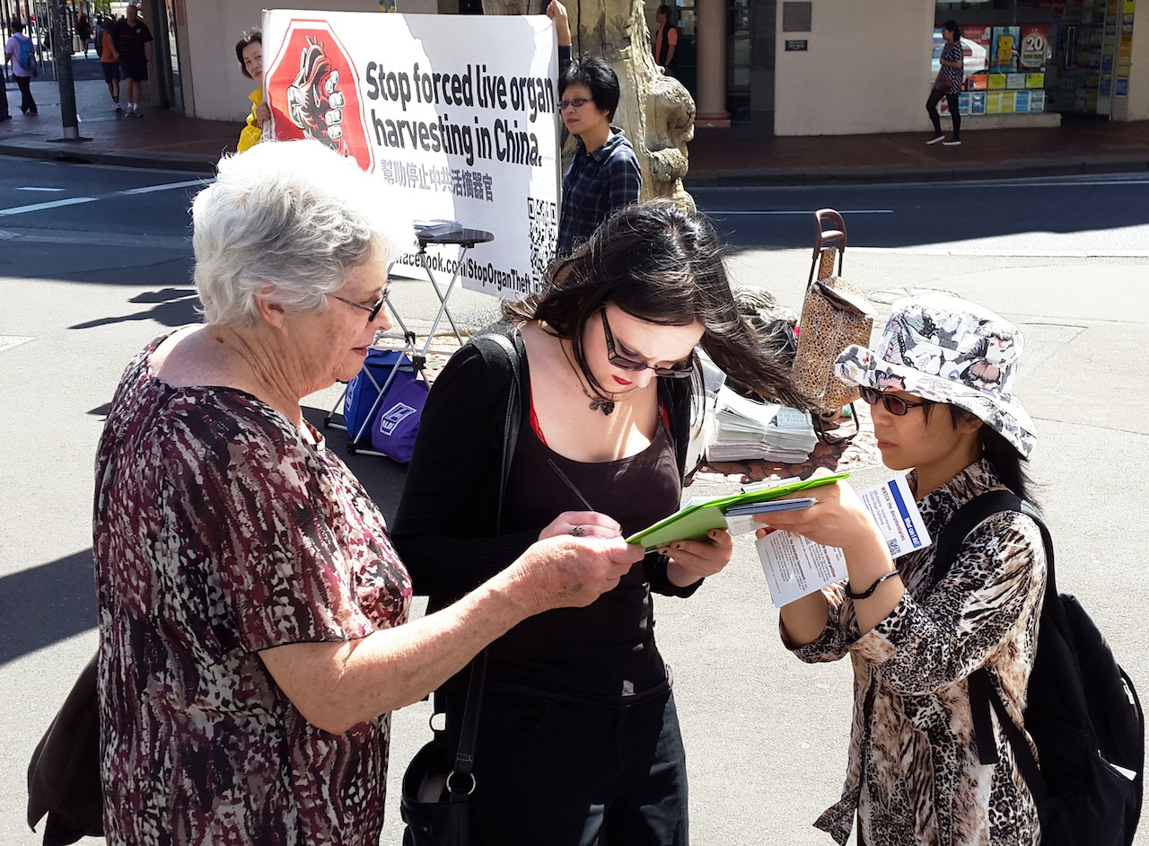 ![]() 图1-9:悉尼市民在中国城签名“制止中共活摘法轮功学员器官” |