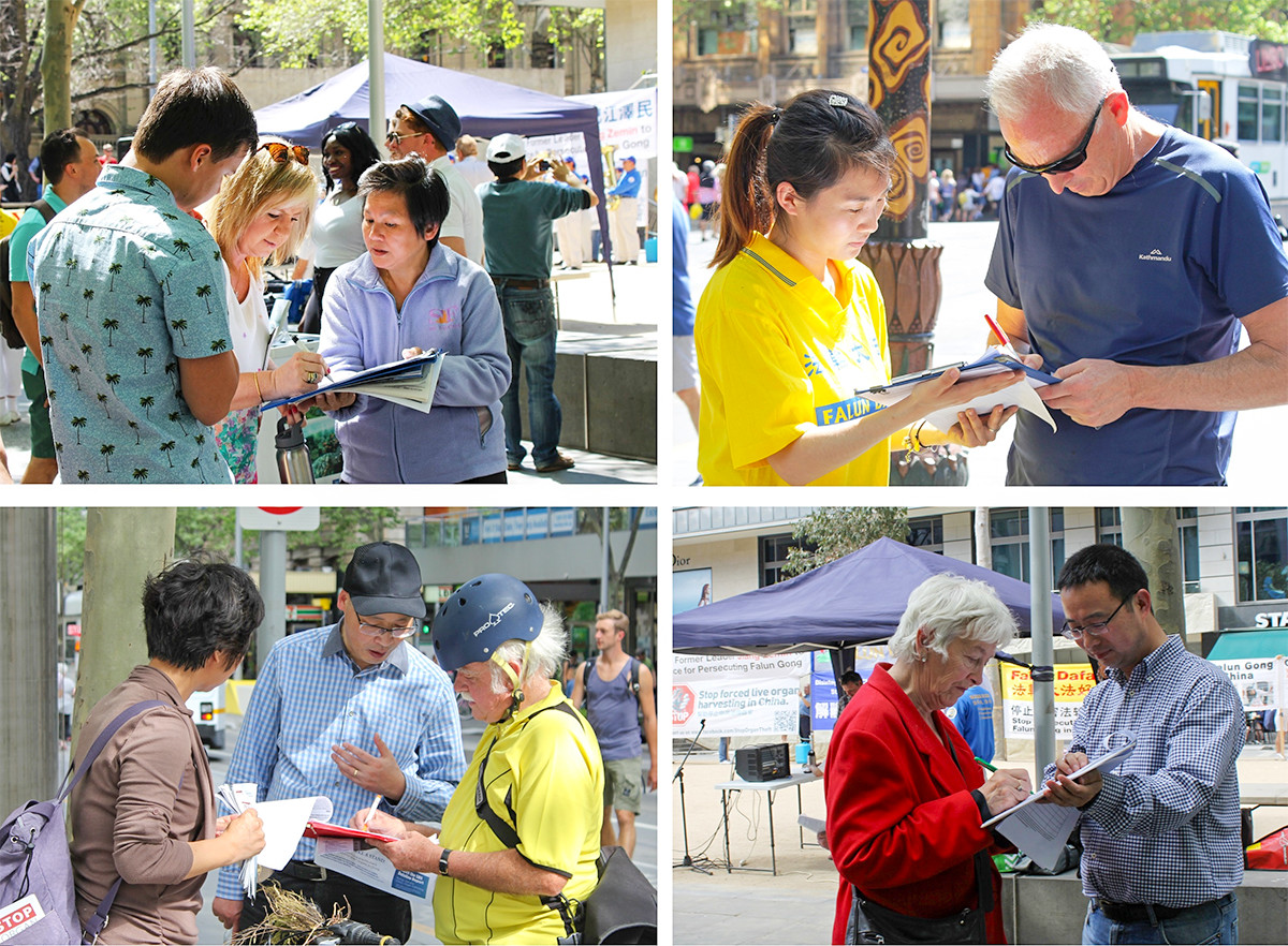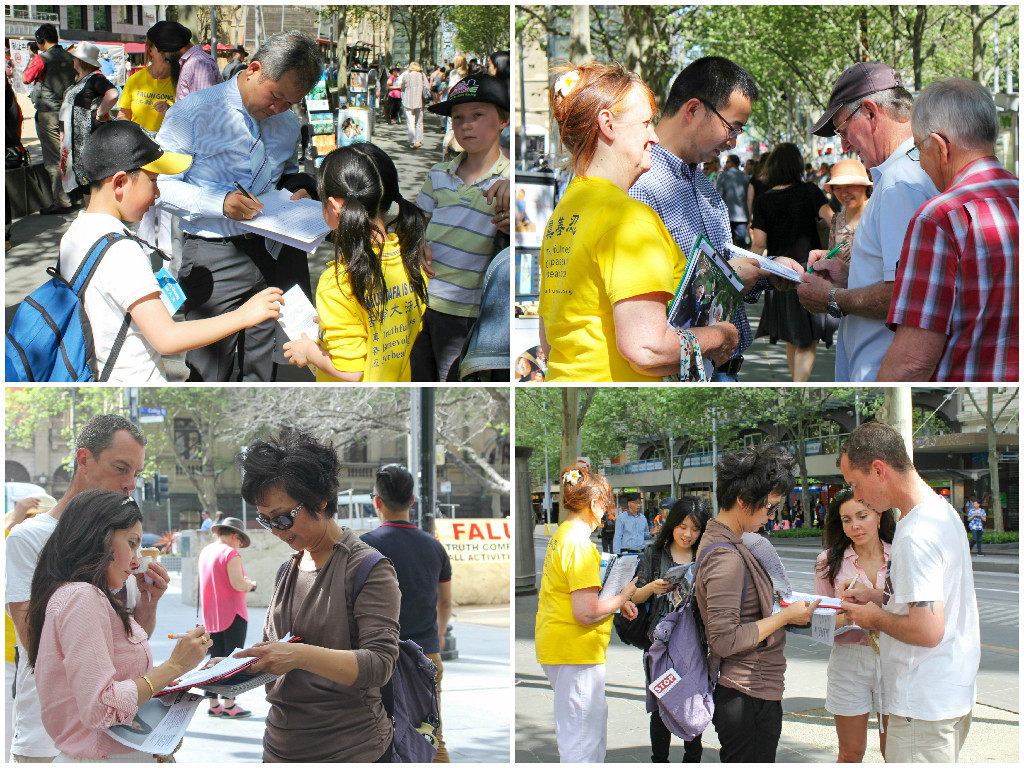 ![]() 图1-2:澳洲墨尔本民众和游客签名支持法办迫害元凶江泽民,呼吁停止迫害法轮功。 |