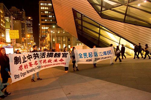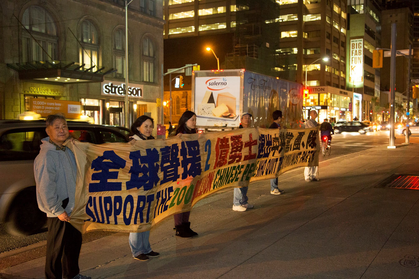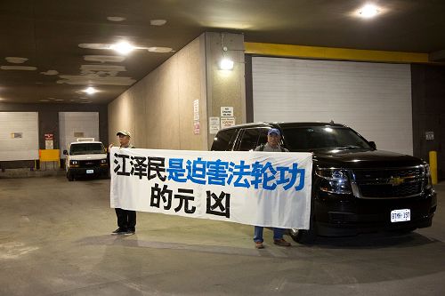 ![]() 图1-4:多伦多法轮功学员在安省博物馆门口拉起横幅,举行抗议活动,要求把江泽民及其迫害法轮功的同犯罗志军绳之以法。 |