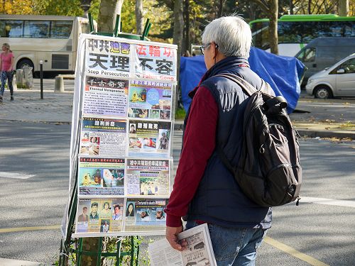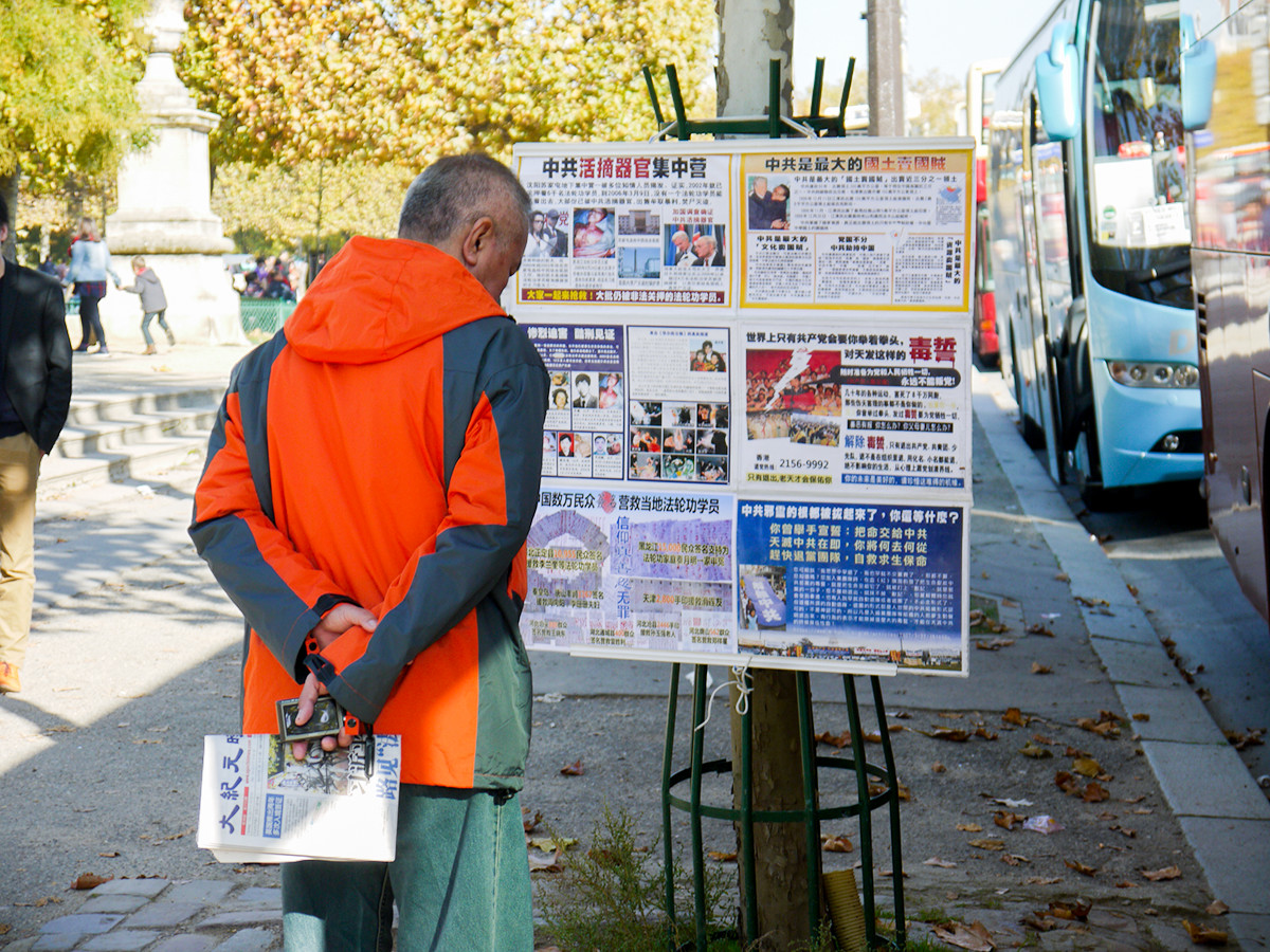 还有一次,陈女士遇到一位六十出头的男游客,他接过报纸点头说:“我全知道,我什么都明白,我都看过,我都知道。我也都退了。”又说:“中国有你们法轮功,有希望了。”