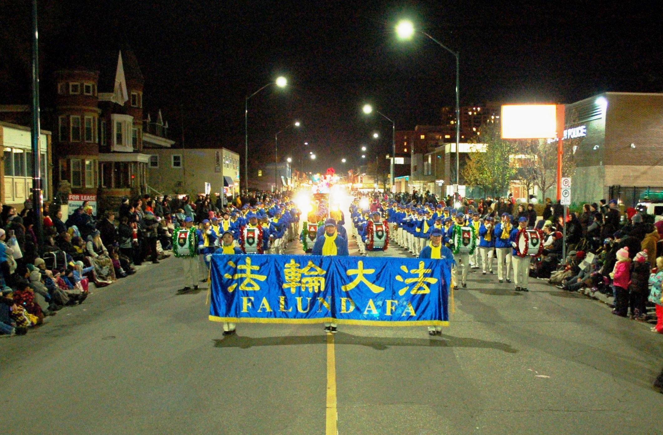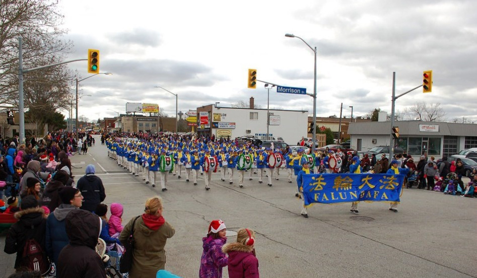 【明慧网二零一五年十一月十七日】二零一五年十一月十四日,加拿大多伦多法轮功学员组成的天国乐团应邀参加了两场圣诞节大游行(Santa Claus Parade)。第一场游行是在世界闻名的尼亚加拉大瀑布所在城市——安省尼亚加拉市举行,第二场是在美丽的号称“森林之城”的安省伦敦市举行。