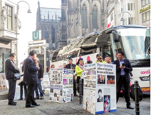 ![]() 图1-2:法轮功学员在德国科隆大教堂(Cologne Cathedral, Germany)设立了真相点,传播真相。 |