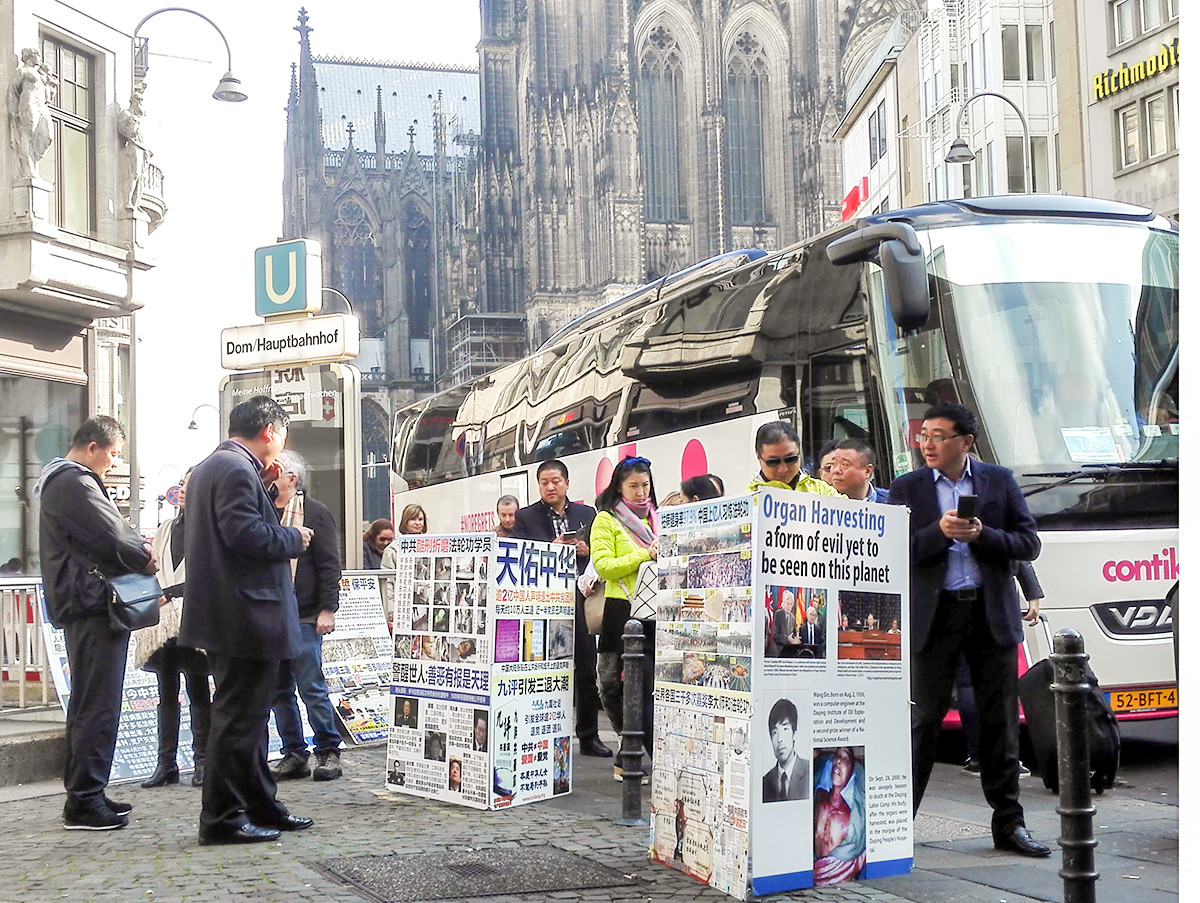 一大陆团游完大教堂回来,站在巴士站放真相展板的附近等车。不看真相展板也不接真相报,冷漠中带有反感。学员说:“兄弟姐妹,叔叔阿姨们,欢迎你们来德国旅游。出国了,请抓紧时间了解真相。中共窃政半个多世纪以来,一次次大搞整人运动,大开杀戮……它这么邪恶,因为它的老祖宗马克思是撒旦教教徒。我们不与邪恶为伍,退出党团队保平安,真心希望你们都平安吉祥。”