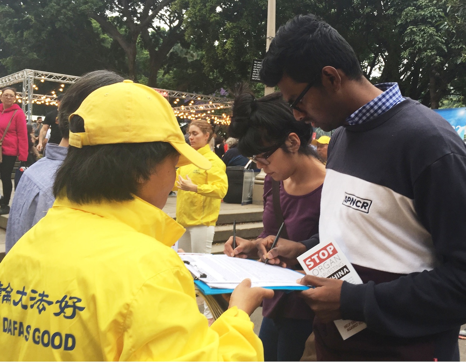 ![]() 图1-4:了解真相的悉尼人正在“制止中共活摘法轮功学员器官和声援中国民众控告迫害法轮功的元凶江泽民的签名表”上签名。 |