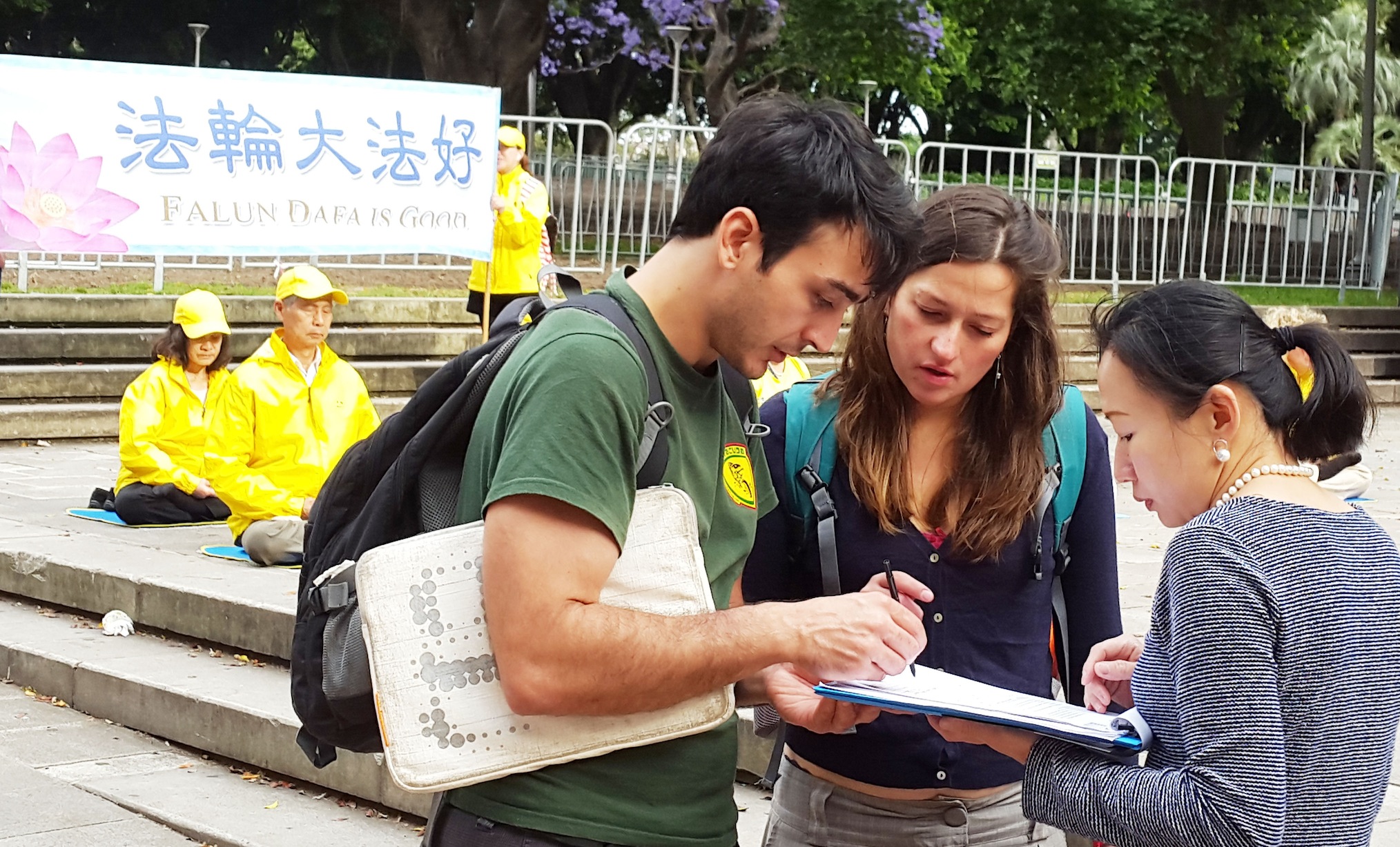 在附近上班的澳洲人迈克尔(Michael A)先生也表示多次看到这样的真相展示,但是真还不知是这么残酷的迫害。他表示:“这真的是非常不好的事,非常耸人听闻的事,所以你们现在做的事非常好,你们请路人一个一个的签名制止这场迫害,非常好。我衷心希望你们成功!”