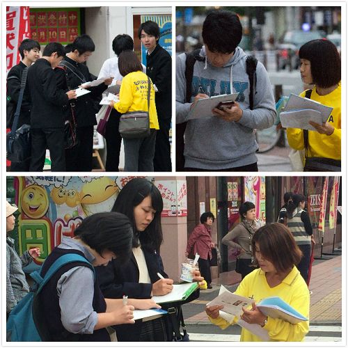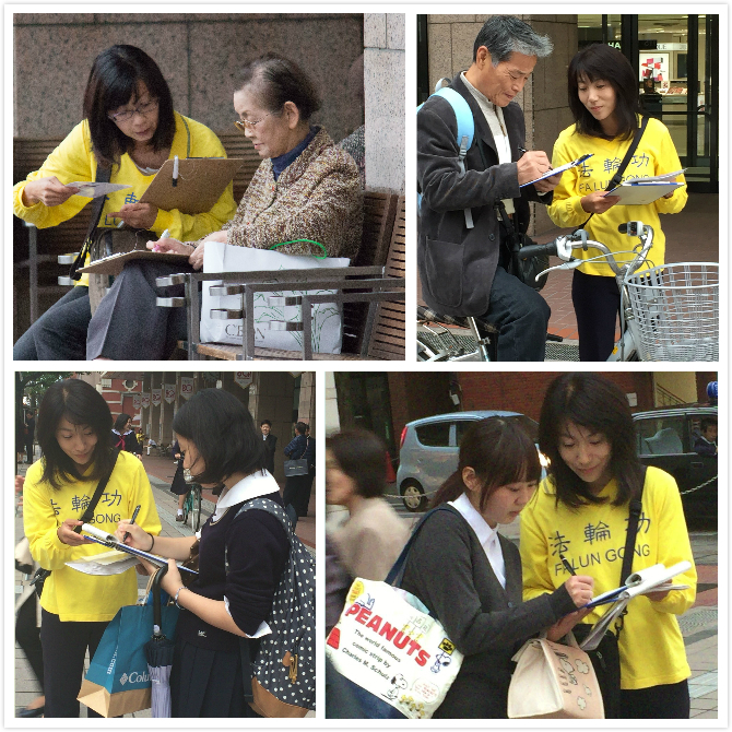 ![]() 图1-2:在大分县的繁华街道上举行诉江征签活动 |