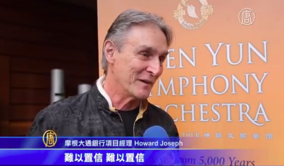 摩根大通银行项目经理霍华德•约瑟夫(Howard Joseph)于十月二十五日在费城金梅尓表演艺术中心(Kimmel Center for the Performing Arts)欣赏了神韵交响乐团音乐会:“非常美,很有独创性,好像对你的心灵讲话,你能感觉到。除了听到的音乐,其他已不复存在,世间的烦恼好像都消退了……难以置信,难以置信。演奏的作品一个比一个精彩”。