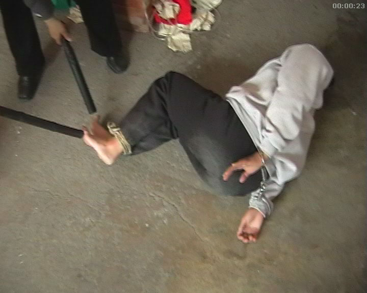 二零零零年十二月二十八日晚八点,我遭绑架至北京朝阳区公安局下属的街道派出所,将我们非法关押在铁笼子里,一个小个子的警察拿铝饭盒盖在我左脸上扇了好几个耳光,一边污言秽语一边对我又是一顿拳打脚踢,扬言要用自来水管冲我,把我的孩子抢走要放到院子里冻以逼我说出他们想知道的。他们强行逼我脱了大衣,把我拖到院子里在零下十几度的气温下冻。直到第二天二十九日中午我们滴水未进,包括我那四岁多的孩子。下午二、三点左右,甘肃省驻京办的工作人员将我和孩子带到驻京办,强行搜身,搜走我的现金,将我们非法关押在驻京办的地下室内,我的左脸被铝饭盒盖打的乌黑,眼睛充血,看起来很吓人。