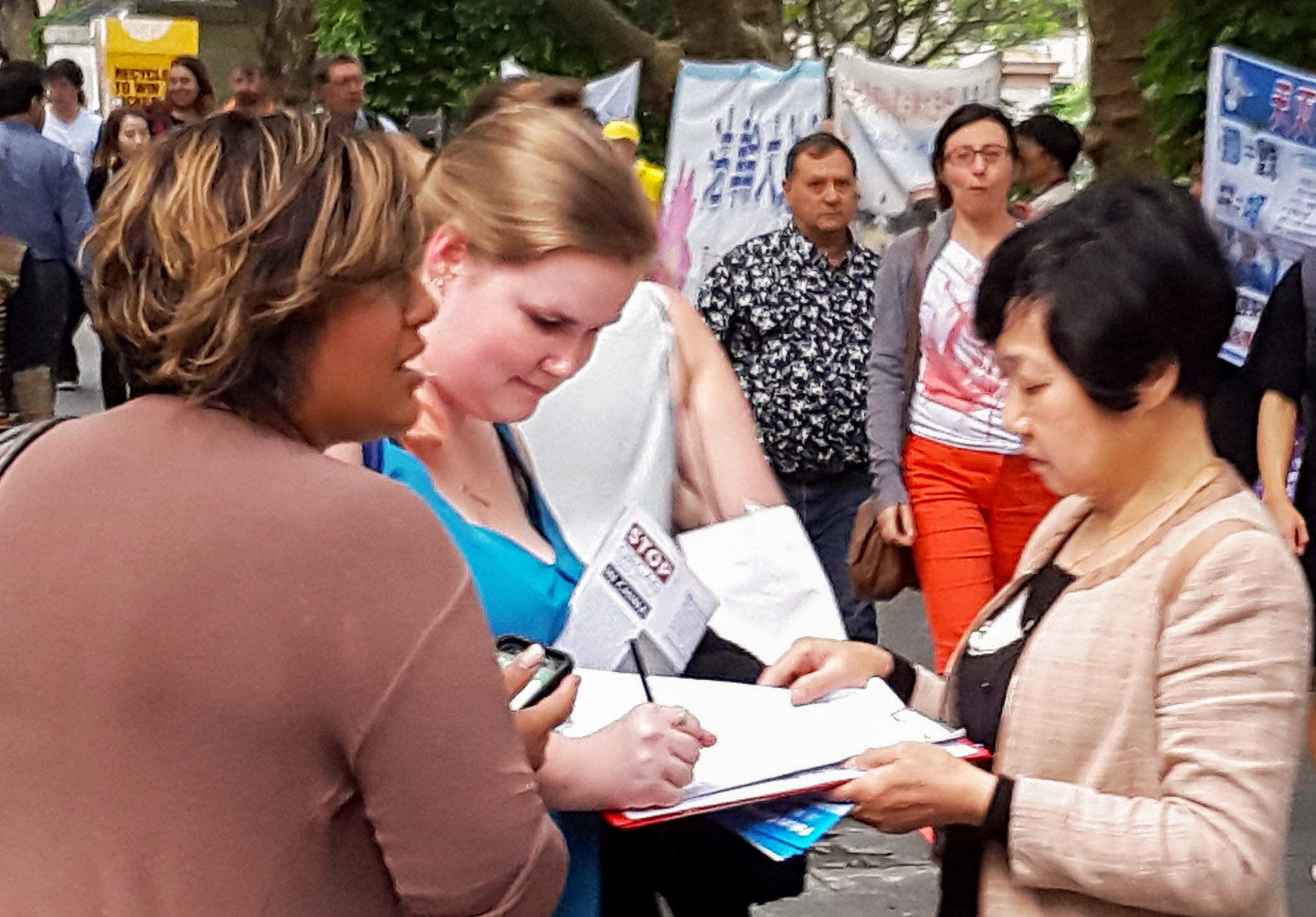 他们都签名反迫害,然后拿了资料回去传播真相,帮助制止迫害。
