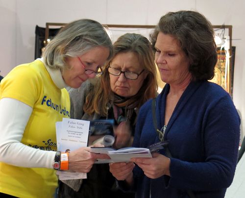 马格努斯的妈妈在听了对法轮大法的介绍后对儿子的兴趣感到高兴。母子俩人拿着介绍大法的资料开开心心地离开了。