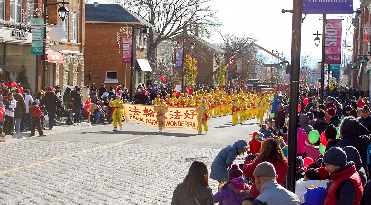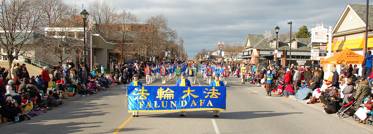 ![]() 图1:法轮大法代表队多伦多天国乐团在万锦市圣诞节大游行中 |