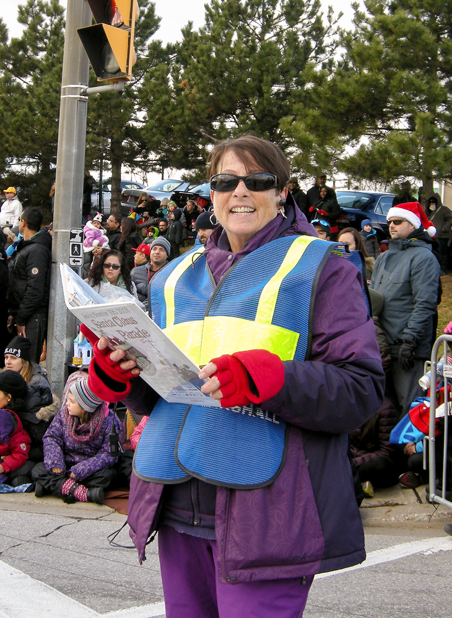Lucie Muldoon女士来自于密西沙加市,她是这次密市圣诞大游行的负责人。Muldoon女士说:“天国乐团和腰鼓队表演得非常好,我们多年来总是邀请他们来参加这个大游行。他们的衣服非常耀眼,他们的音乐绝对是非常美!我们尤其爱腰鼓队衣服的颜色,这种金黄色使得这里的一切都明亮起来(brights up everything),我觉得它是这个大游行的一个完美搭配!(a perfect fit for the parade)”