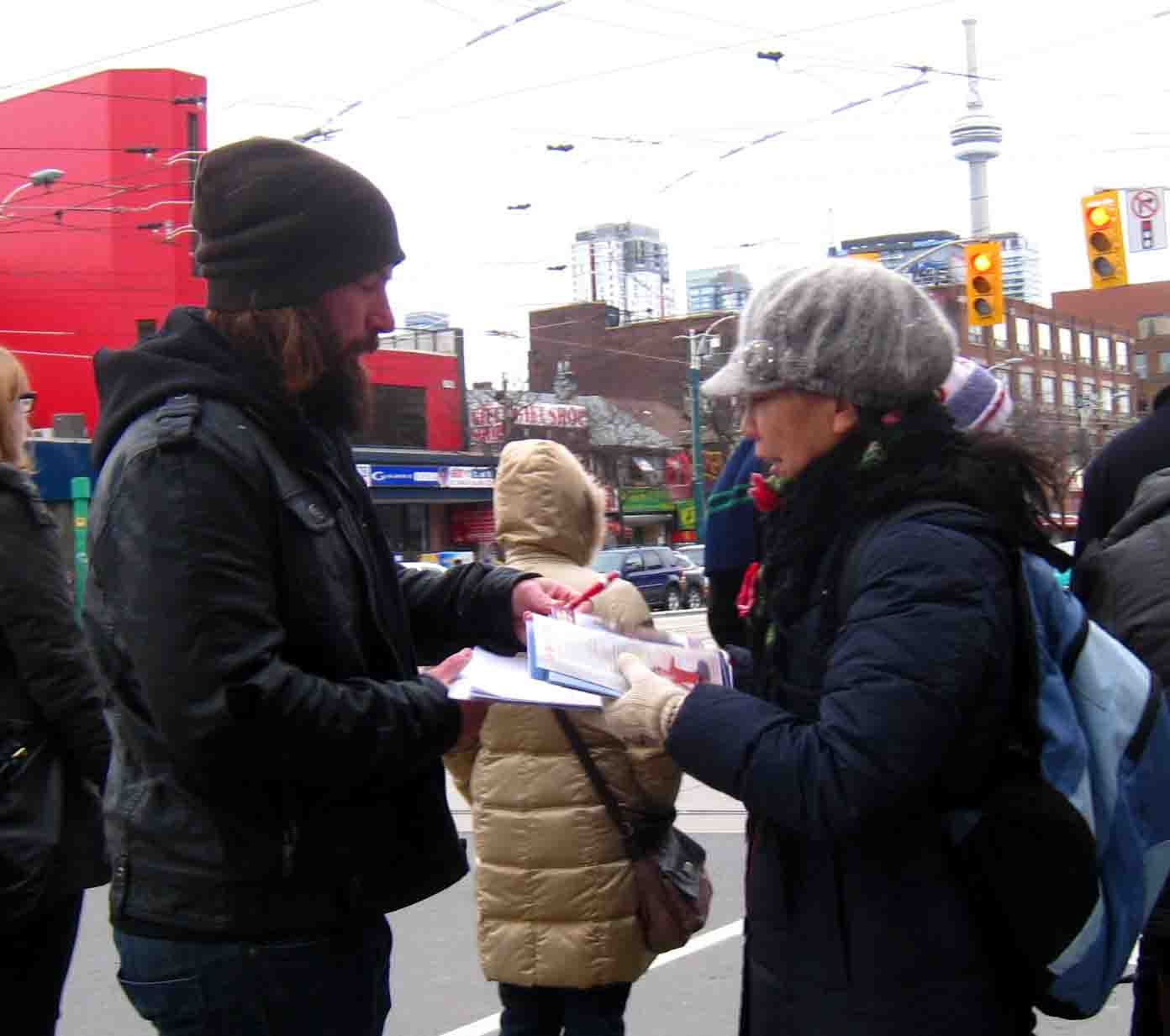 多伦多市的土木工程师Sam在现场了解到法轮大法是教人按照“真善忍”原理去做好人的功法、在中国大陆被中共迫害是由前中共独裁者江泽民因妒嫉而一手发起,他说:“中共真是太疯狂了!应该将江泽民送上审判台!”Sam在“制止中共活摘法轮功学员器官”的征签表上签了名,支持法轮功学员的反迫害活动。