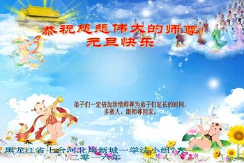 山东威海两个学法小组大法弟子恭祝慈悲伟大的师尊新年快乐!