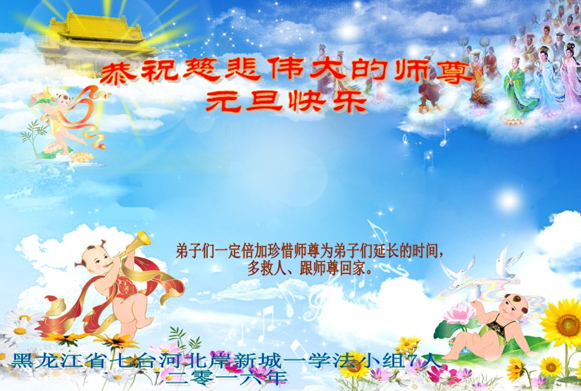 二零一六年到了,我们学法小组全体学员给慈悲伟大的师尊新年好!