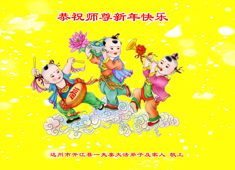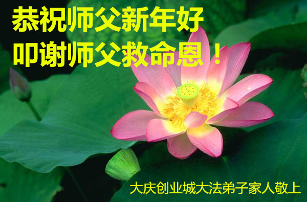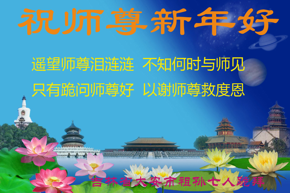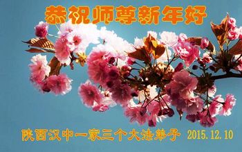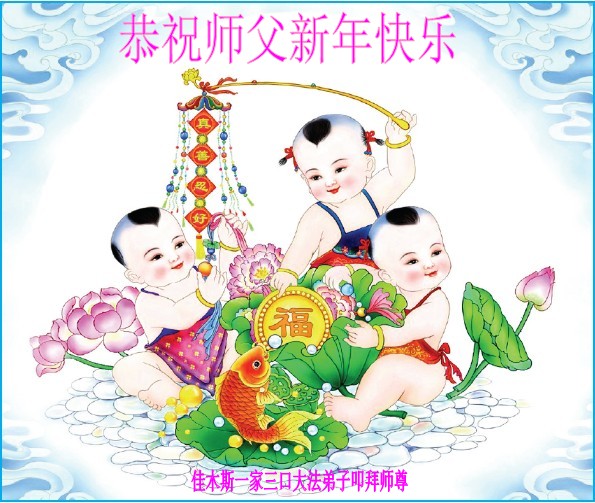 山东省兖矿集团东滩矿大法弟子一家三口跪拜师尊!恭祝慈悲伟大的师尊新年好!