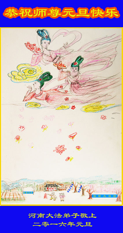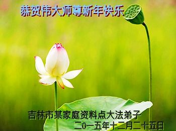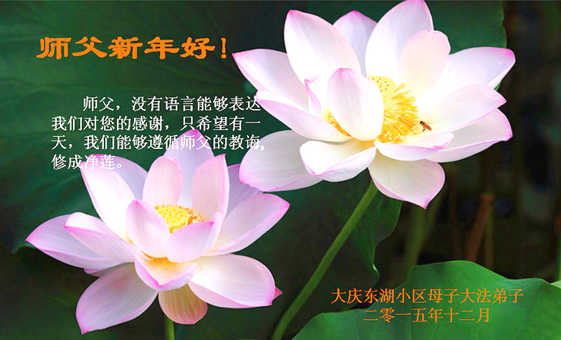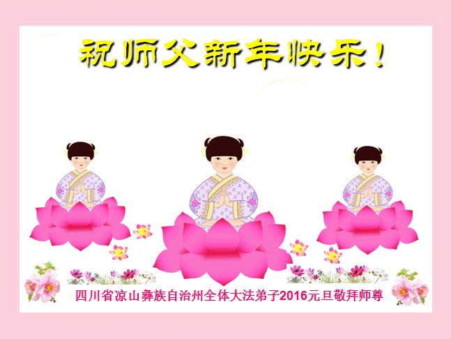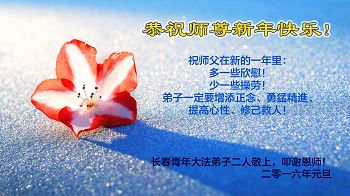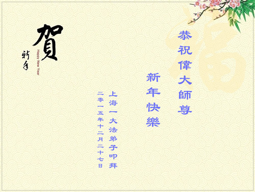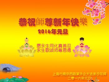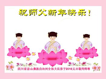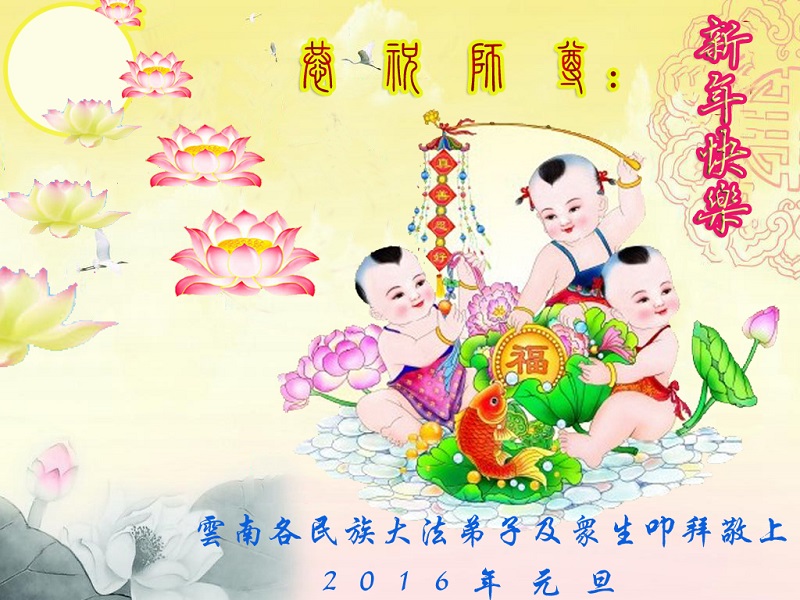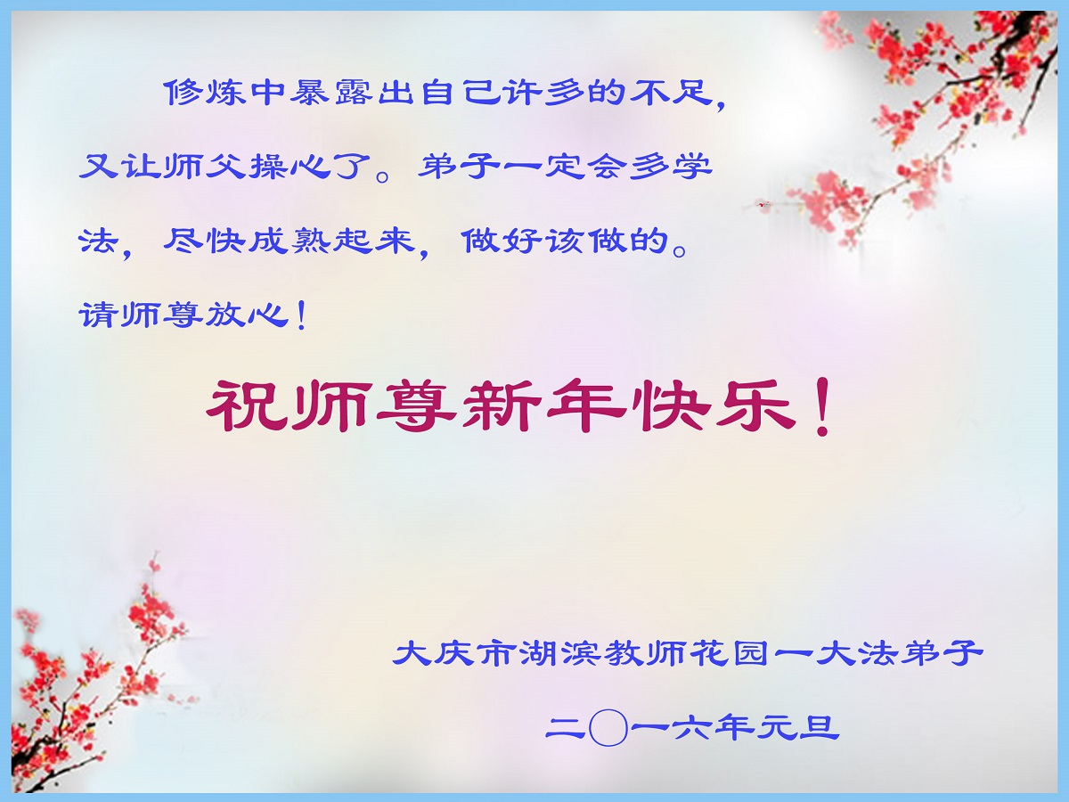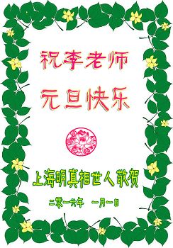 【明慧网二零一五年十二月三十一日】2016年新年到来之际,中国大陆和海外的大法弟子(包括新学员)和明白真相的民众,纷纷把发自内心的节日贺词、诗歌、自制的贺卡等寄给明慧网,恭祝李洪志师父新年好。以下是大陆民众发来的贺词和贺卡。