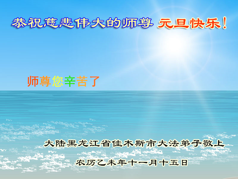 山东威海教育系统大法弟子恭祝慈悲伟大的师尊新年好!