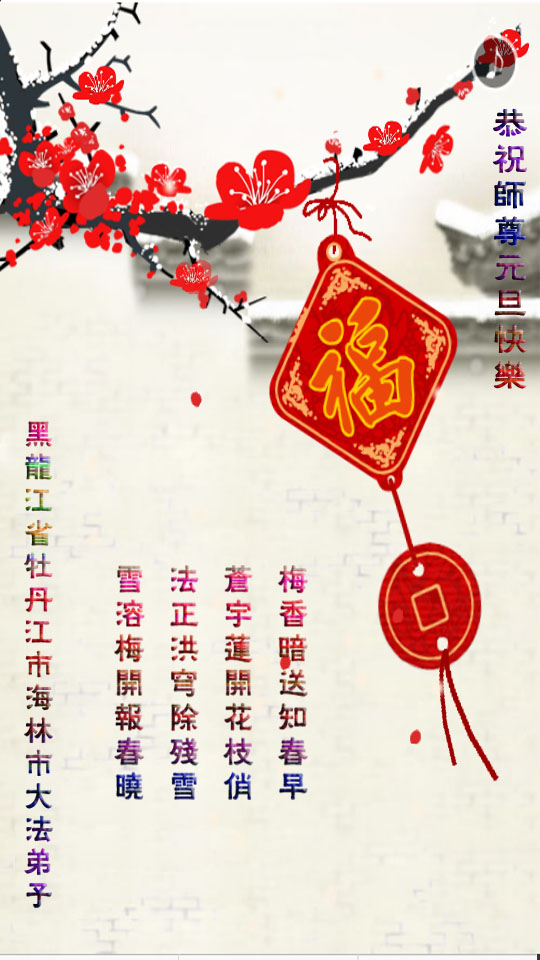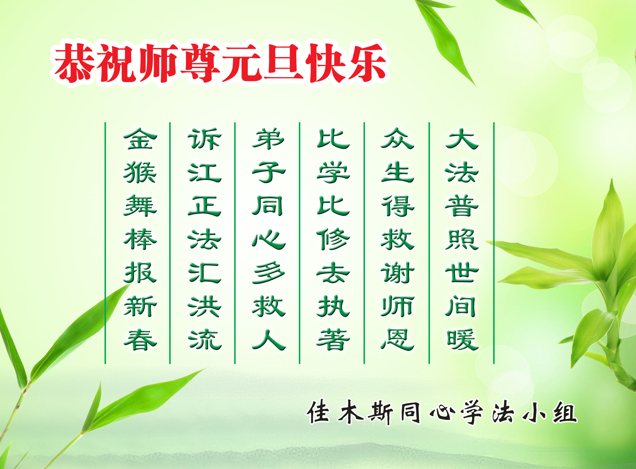 鹤北林业局全体大法弟子诚心恭祝师尊新年快乐!我们一定按照师尊的要求正念正行做好“三件事”多救人,紧跟师尊,完成使命,请师尊放心。