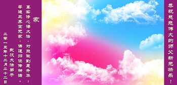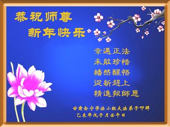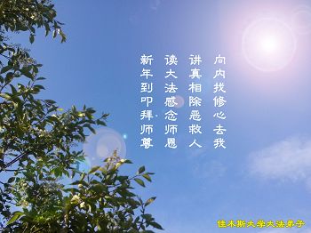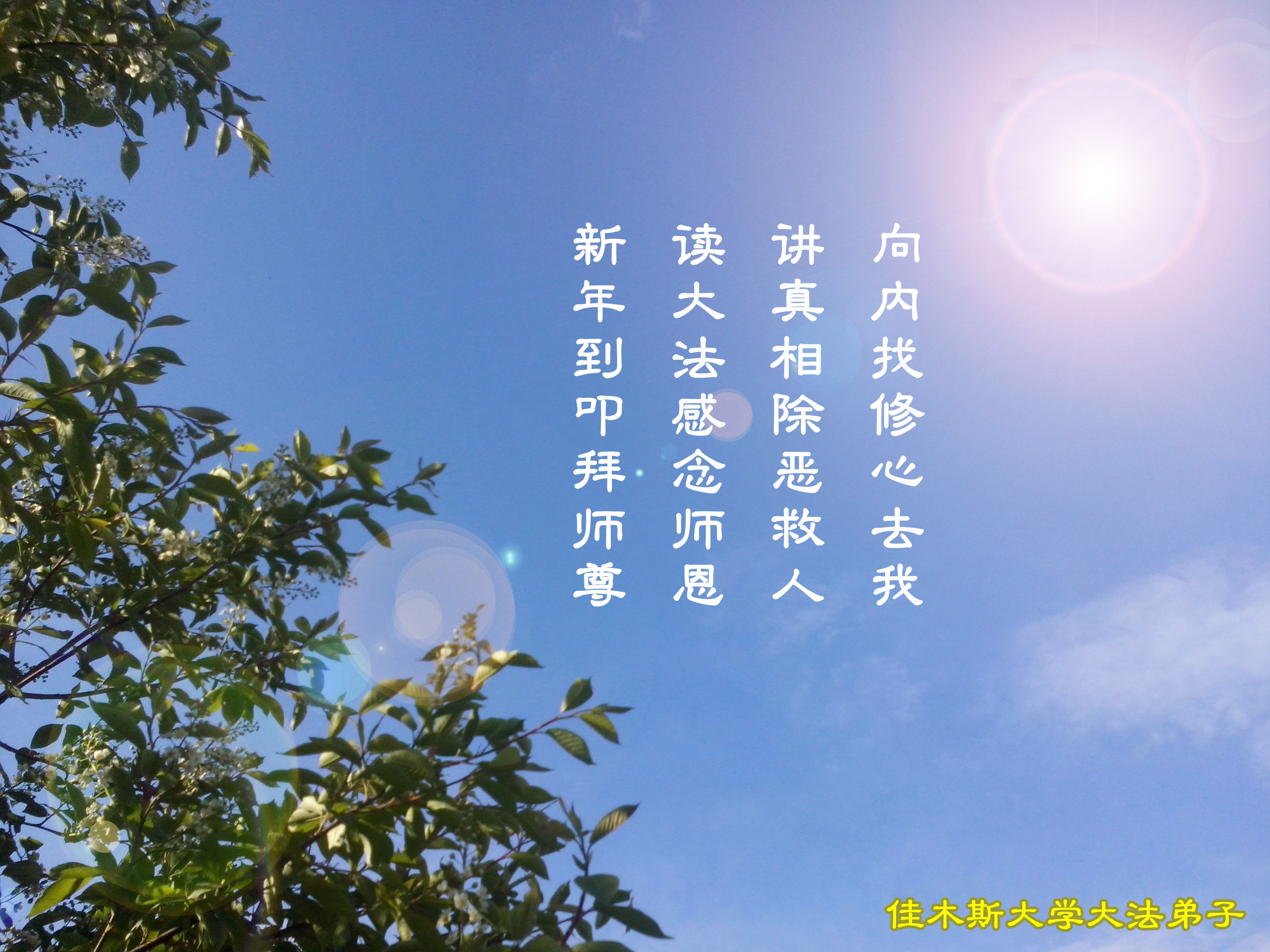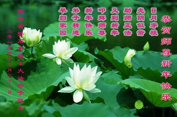 在新的一年里,我们要牢记师父的教诲,多学法、学好法、修好自己、做好三件事,整体升华,整体提高,让师父欣慰、少为我们操劳。