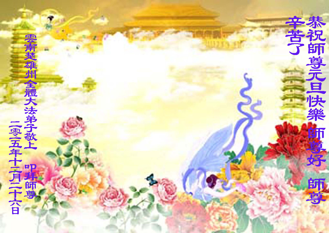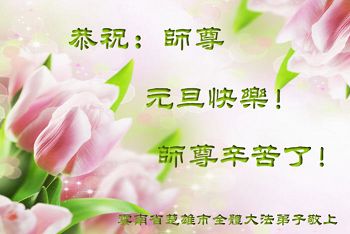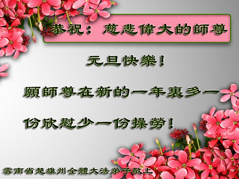 师尊好!恭祝师尊元旦快乐!河南省工商局系统大法弟子感谢师尊慈悲救度!一定走正路,做好三件事,救度世人!请师尊放心!