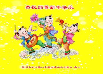 湖北天门市一家弟子及明真相的世人给慈悲伟大的师尊拜年并祝新年快乐!
