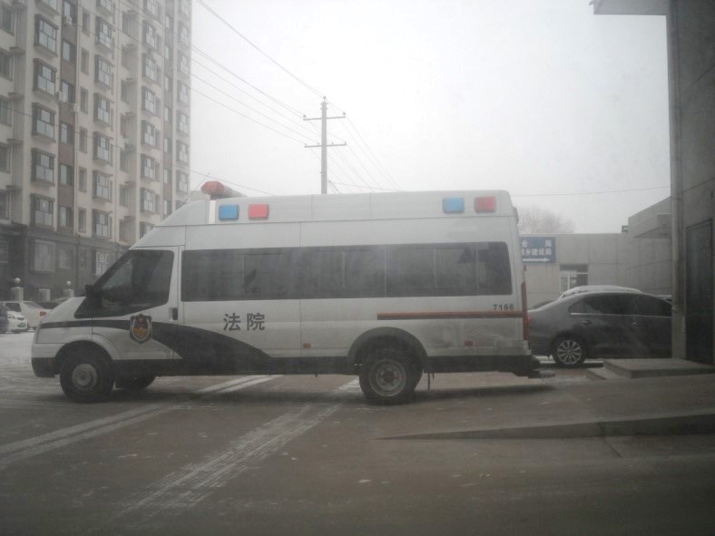 ![]() 图二:俩位大法弟子(穿红拖鞋)下警车、进法院 |