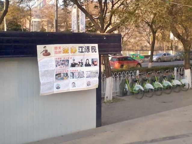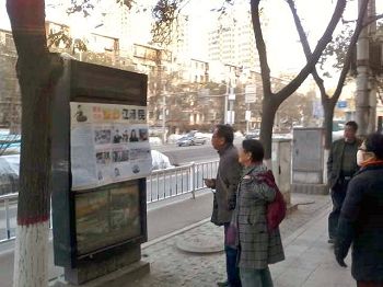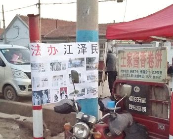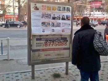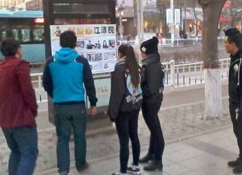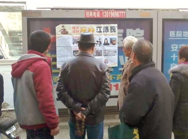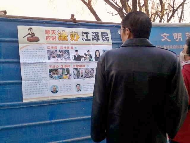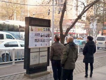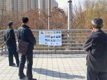 兰州街头人们阅读呼吁法办江泽民的展板 潍坊市某乡镇集市上的诉江展板